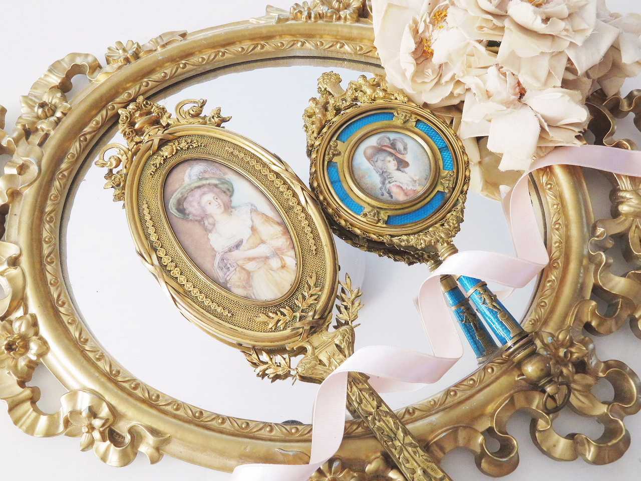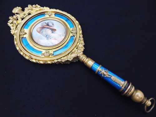 華麗 貴婦人肖像画 ギロッシュエナメル ハンドミラー
