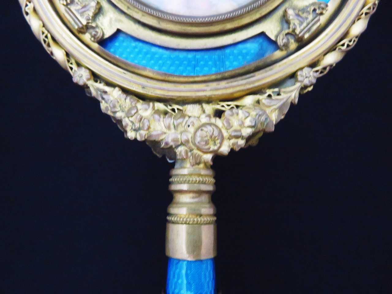 19世紀 XV様式 ミュージアムピース、 オルモル ギロッシュエナメル装飾の手鏡です。
