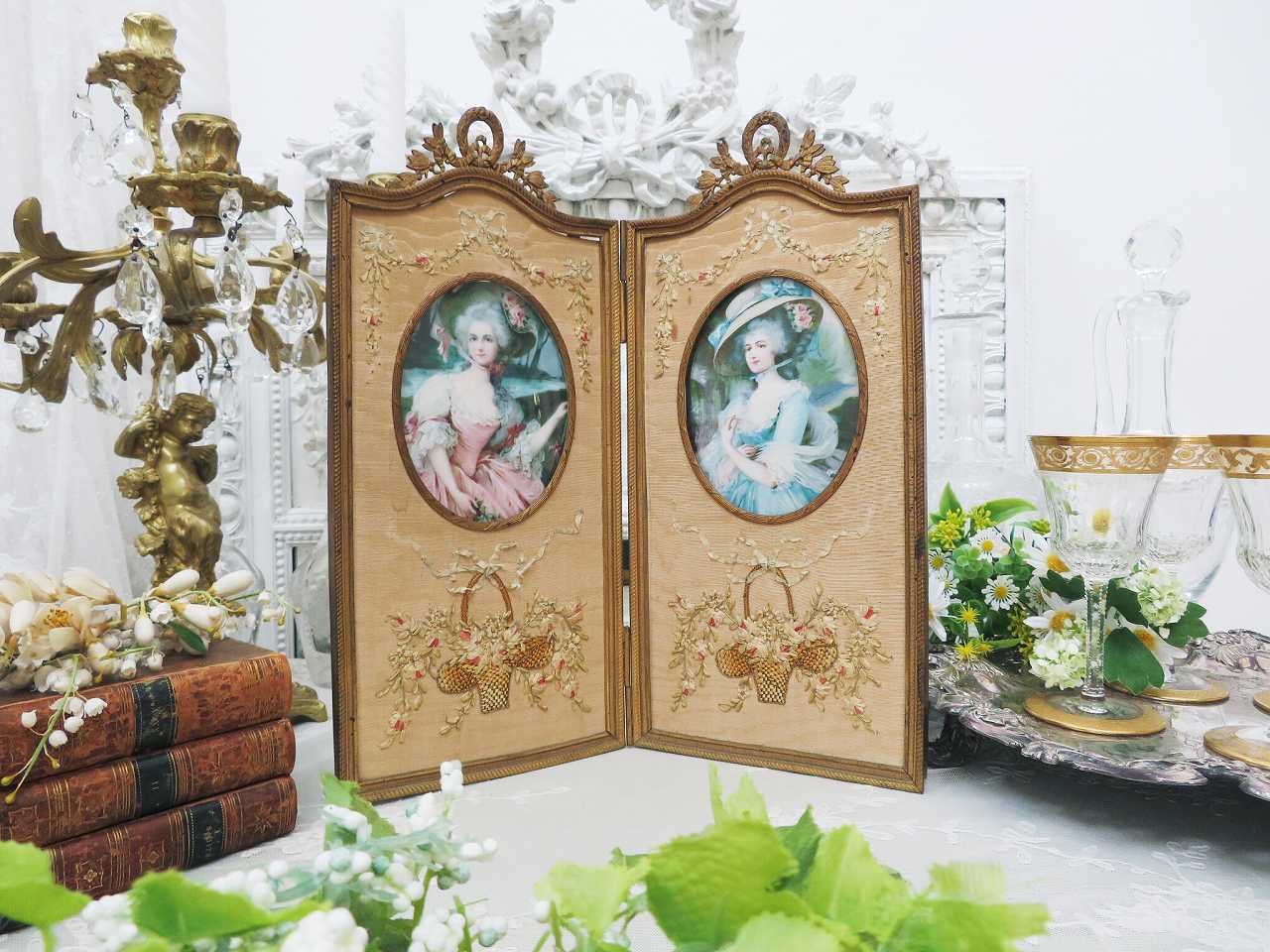 逸品 花かごリボンワーク刺繍 オルモルプティパラヴェント