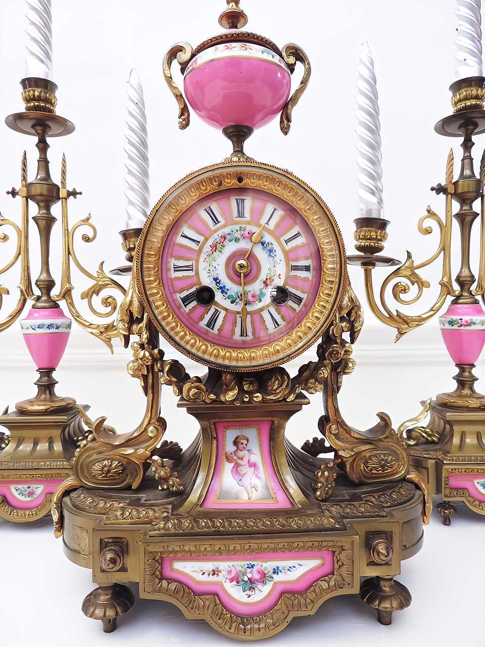 19世紀、マントル置時計オーロージュ(horloge)と蝋燭台セットです。